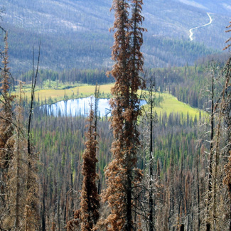 From FR-39, you can reach numerous hiking trails. Most notable perhaps is the Freezeout Ridge trail, which leads to the top of Tiffany Mountain, taking you through forested habitat and then rising above tree line into alpine habitat. There are two campgrounds near FR 39 - Tiffany Spring campground near Tiffany Mountain and Long Swamp Campground, roughly twenty miles north of Tiffany Spring Campground. A trail leads from the Tiffany Spring campground to Tiffany Lake and beyond. Three small but interesting lakes - Roger, Tiffany, and Little Tiffany - are near Tiffany Mountain.